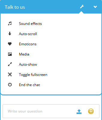 Guest chatting works in exactly the same way. Additionally, while chatting, guests can access a settings menu using the wrench icon on the title bar to update settings like emoticons usage, sound notification usage, auto scrolling the chat box and auto showing of the chat.