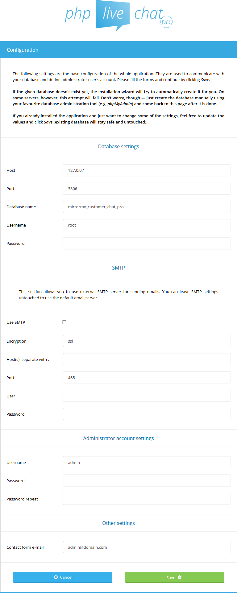 to the root directory of your website). livechat folder contains all of the necessary files (configuration, scripts, data and resources).