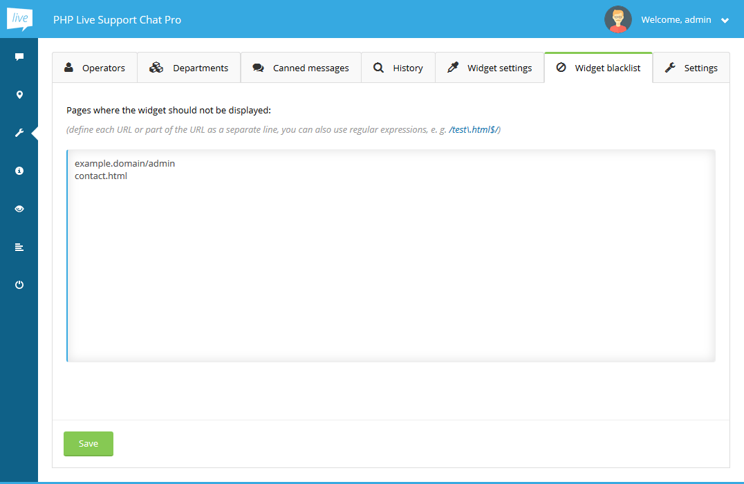 locations inside the Widget blacklist tab. You can use full URL addresses or define only significant parts of those URLs.